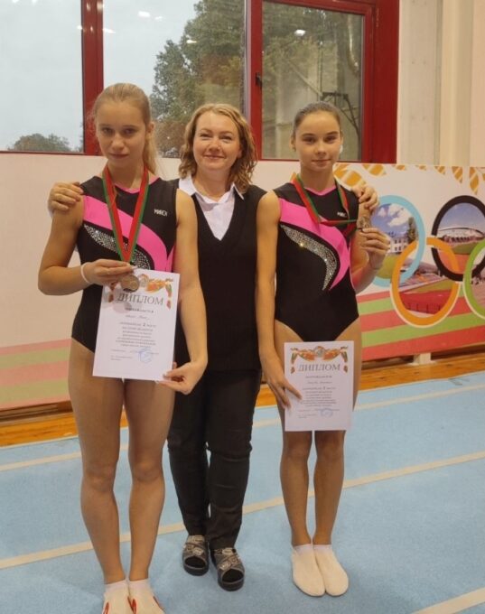 Серебряными призёрами в командных соревнованиях среди женщин стали наши воспитанницы Маслова Анастасия, Шилко Анна вместе со своими напарницами по команде Бельской Елизаветой и Татаринцевой Анастасией (СДЮШОР по спортивной гимнастике и акробатике ГУСиТ Мингорисполкома) – 9,00 балла.