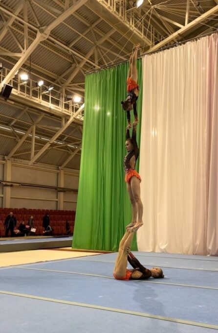 Финалисты соревнований: Лактионова Александра, Захарченя Виктория, Курадовец Ксения (женская тройка) – 6 место (82,770 балла).